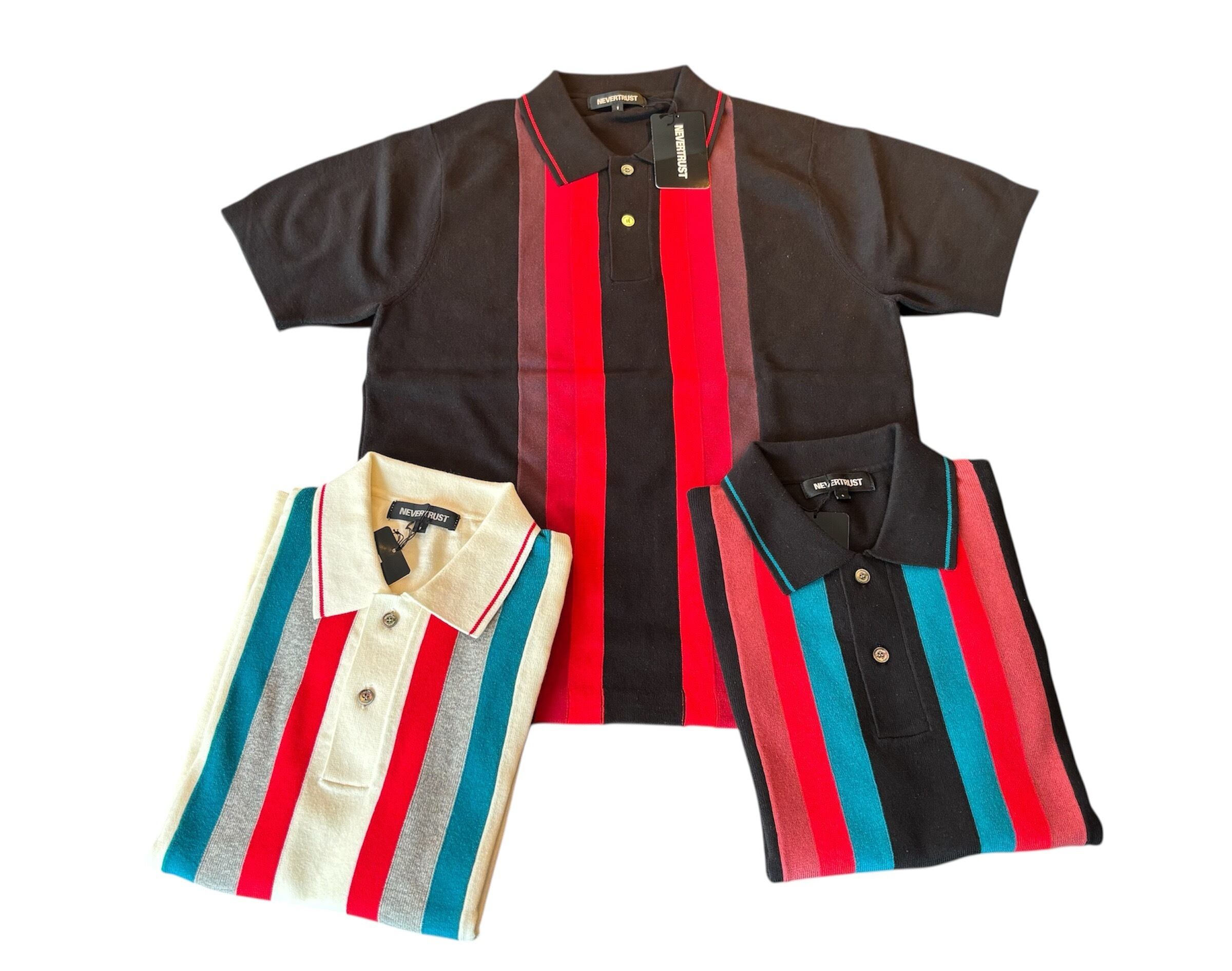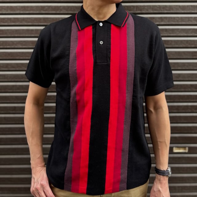 マルチストライプ・ニットポロシャツ BLACK / RED