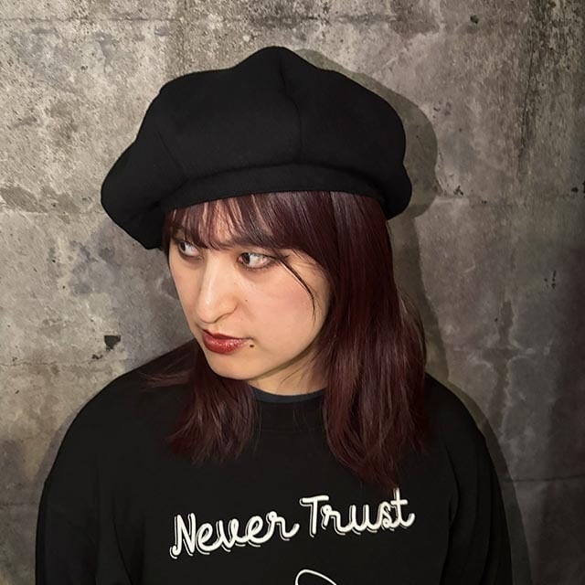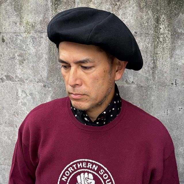 ゆったり大きめシルエットでかぶる8枚はぎのベレー帽。