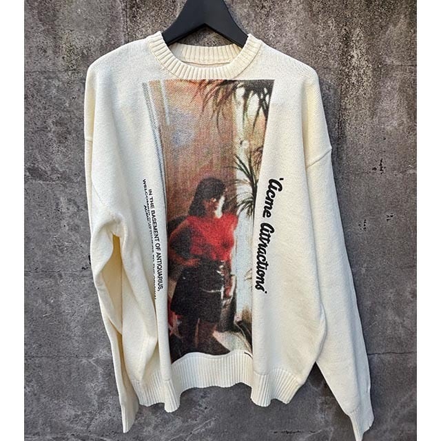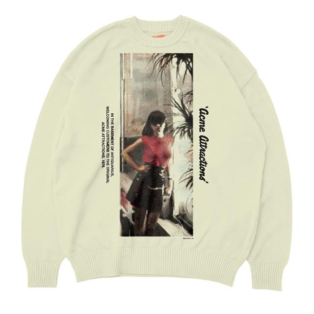ロンドンの伝説的ブティック「Acme Attractions」に佇む、Jannette Lee(ジャネット・リー)をテーマにした一枚。当時の写真に宿るオーラとともに、コットンニットセーターで表現しています。