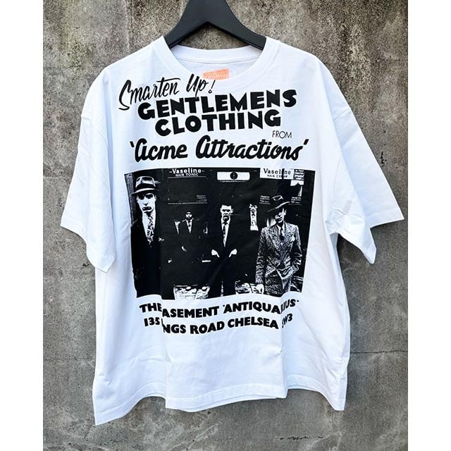 伝説的なロンドンのブティック「ACME ATTRACTIONS」のカルチャーにオマージュを込めた一枚。フロントに大胆なラバープリントを施したデザイン。