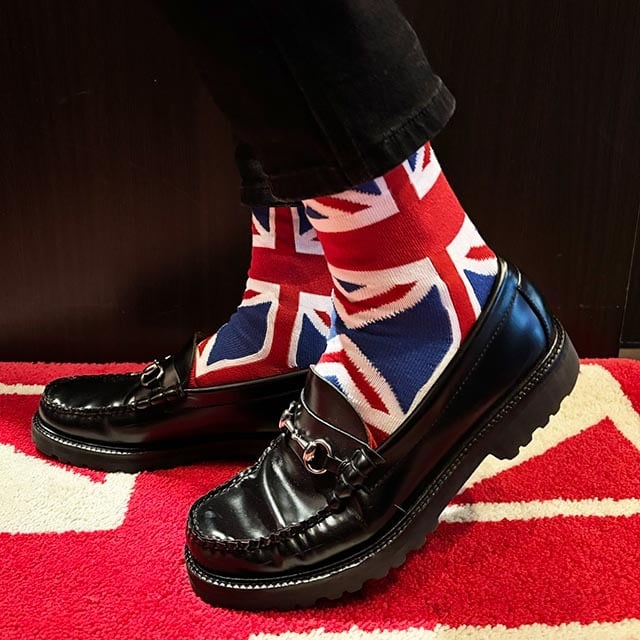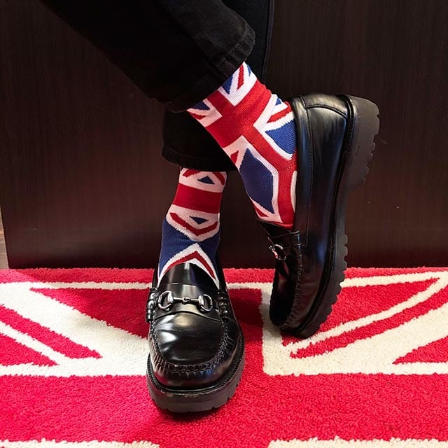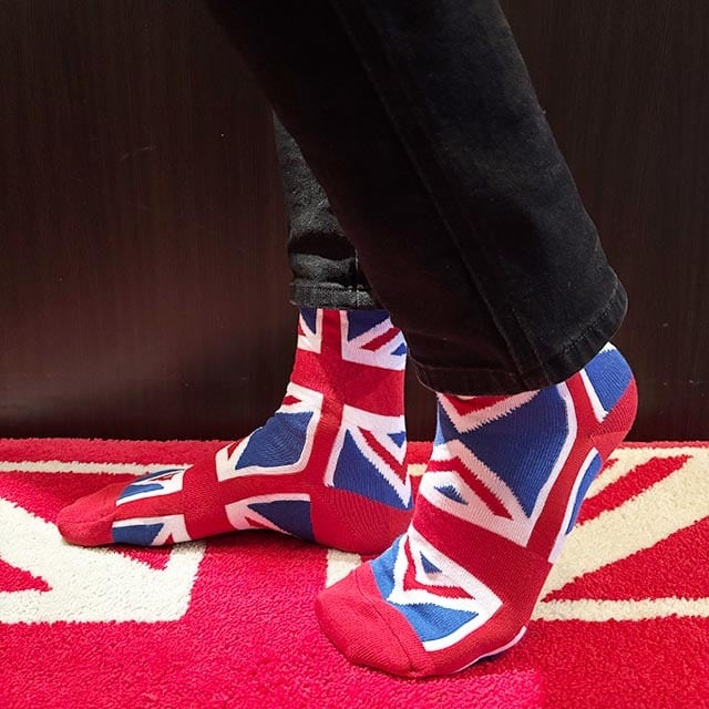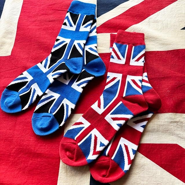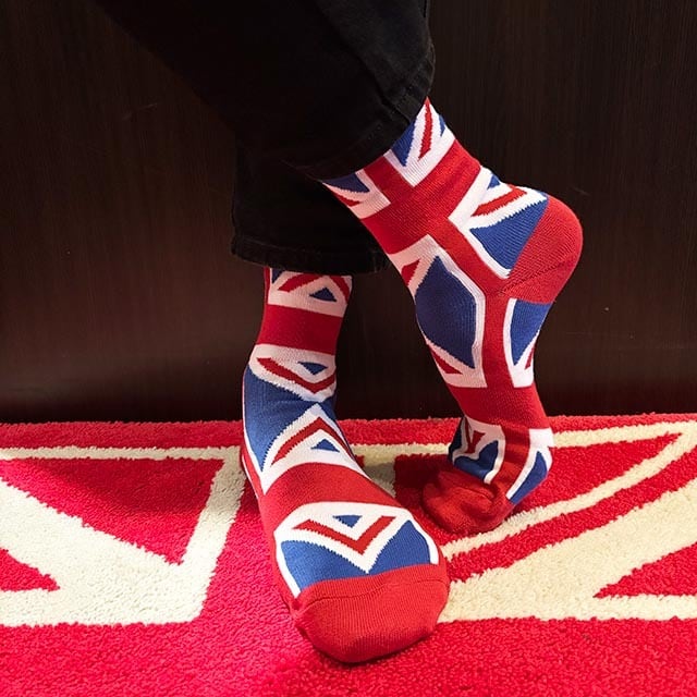 鉄板のユニオンジャック柄のキャッチーなソックス。