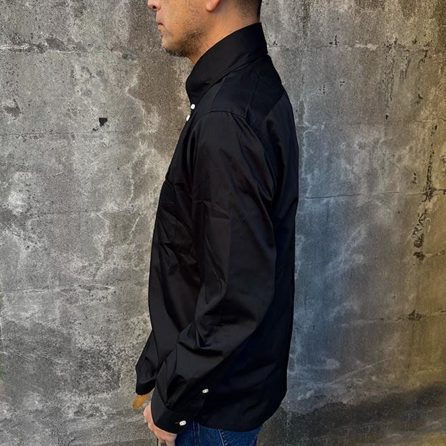 シワになりにくく、乾きやすく、吸水性、肌触りの良さを併せ持った生地のT/Cブロード・長袖ボタンダウンシャツ。