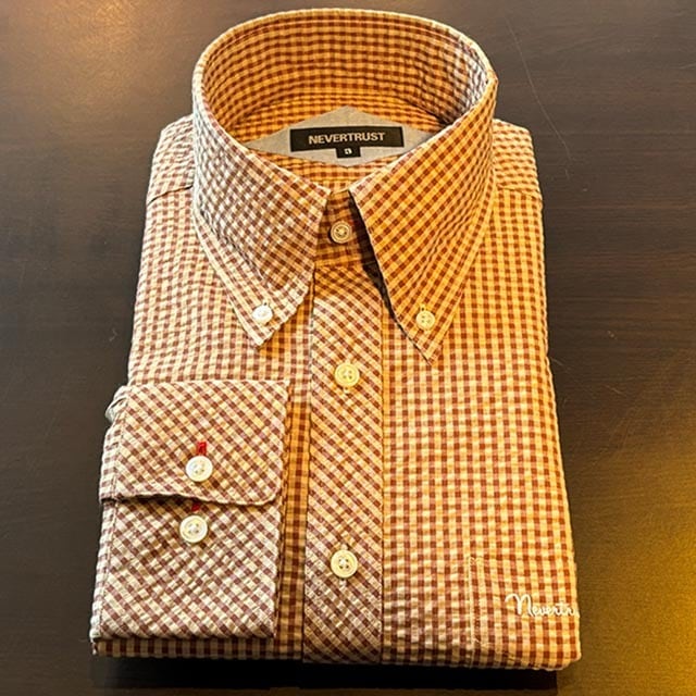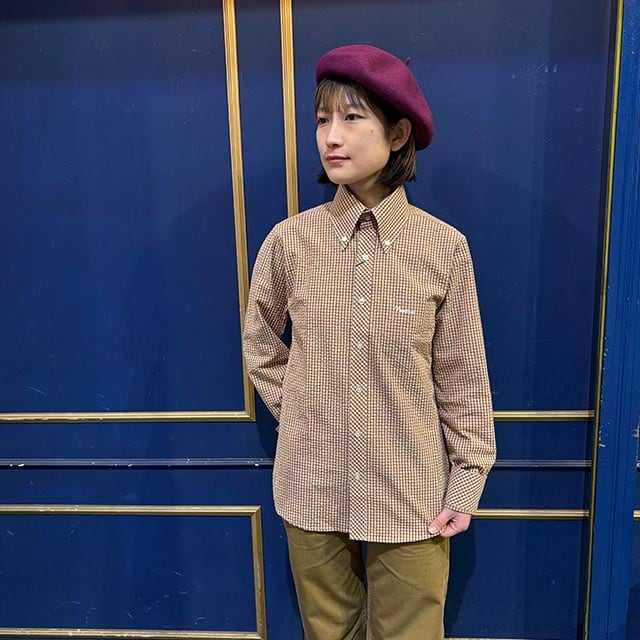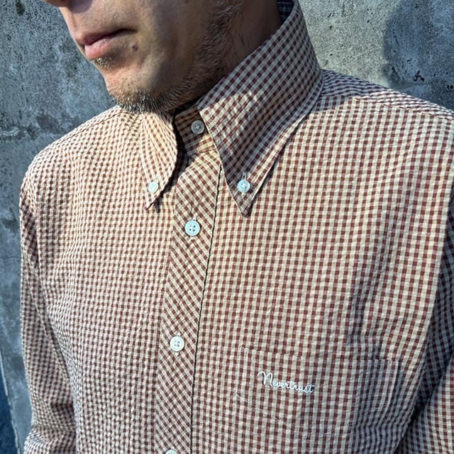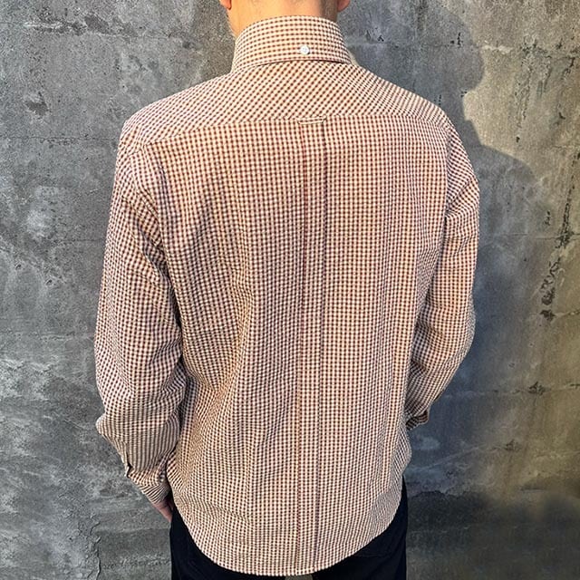 ギンガムチェック シアサッカー長袖BDシャツ Brown