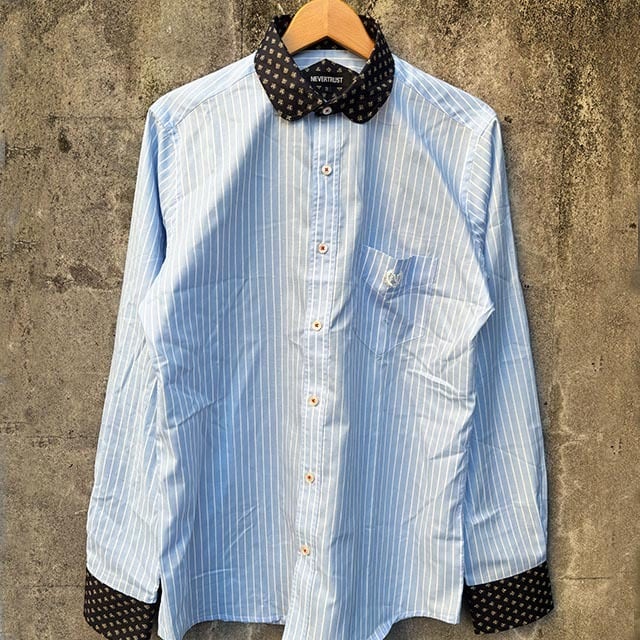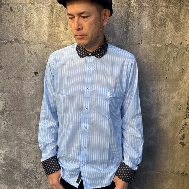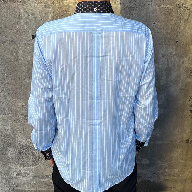 人気のストライプ柄に小紋柄のクレリックの、コーデ映えするシャツです。
