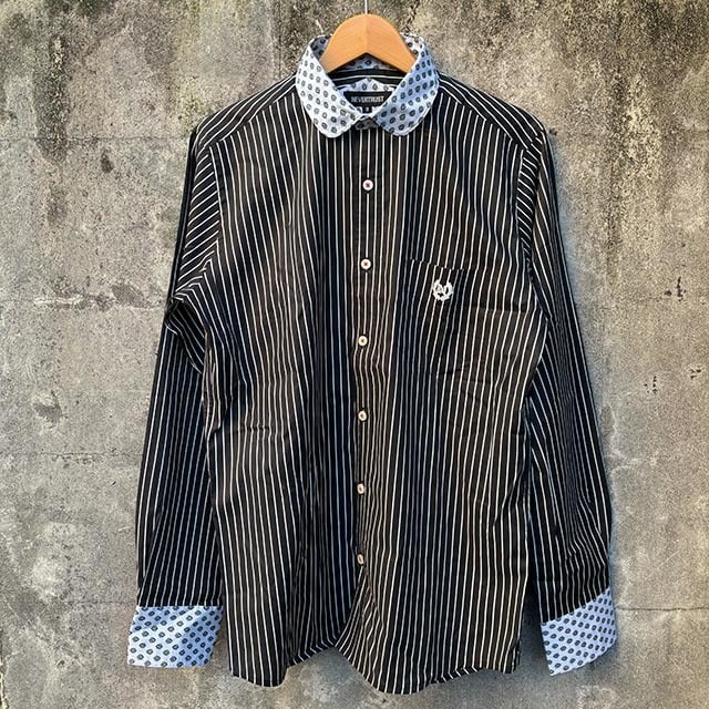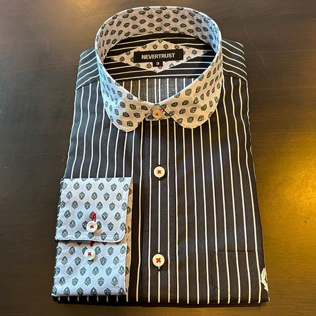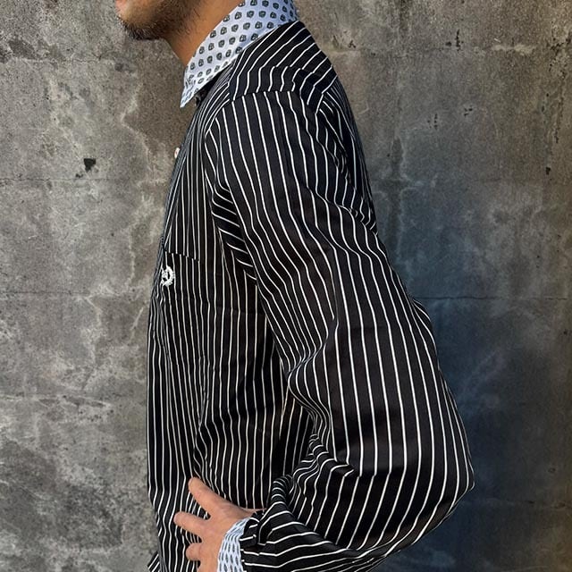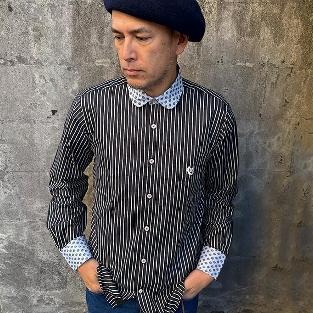 気のストライプ柄に小紋柄のクレリックの、コーデ映えするシャツです。