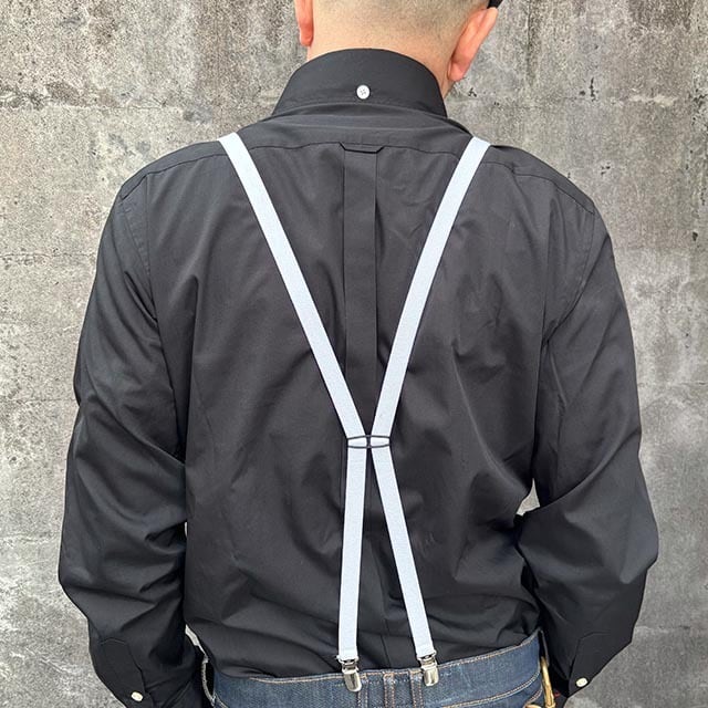 グリップ型サスペンダーなので、様々なボトムスに装着可能です。