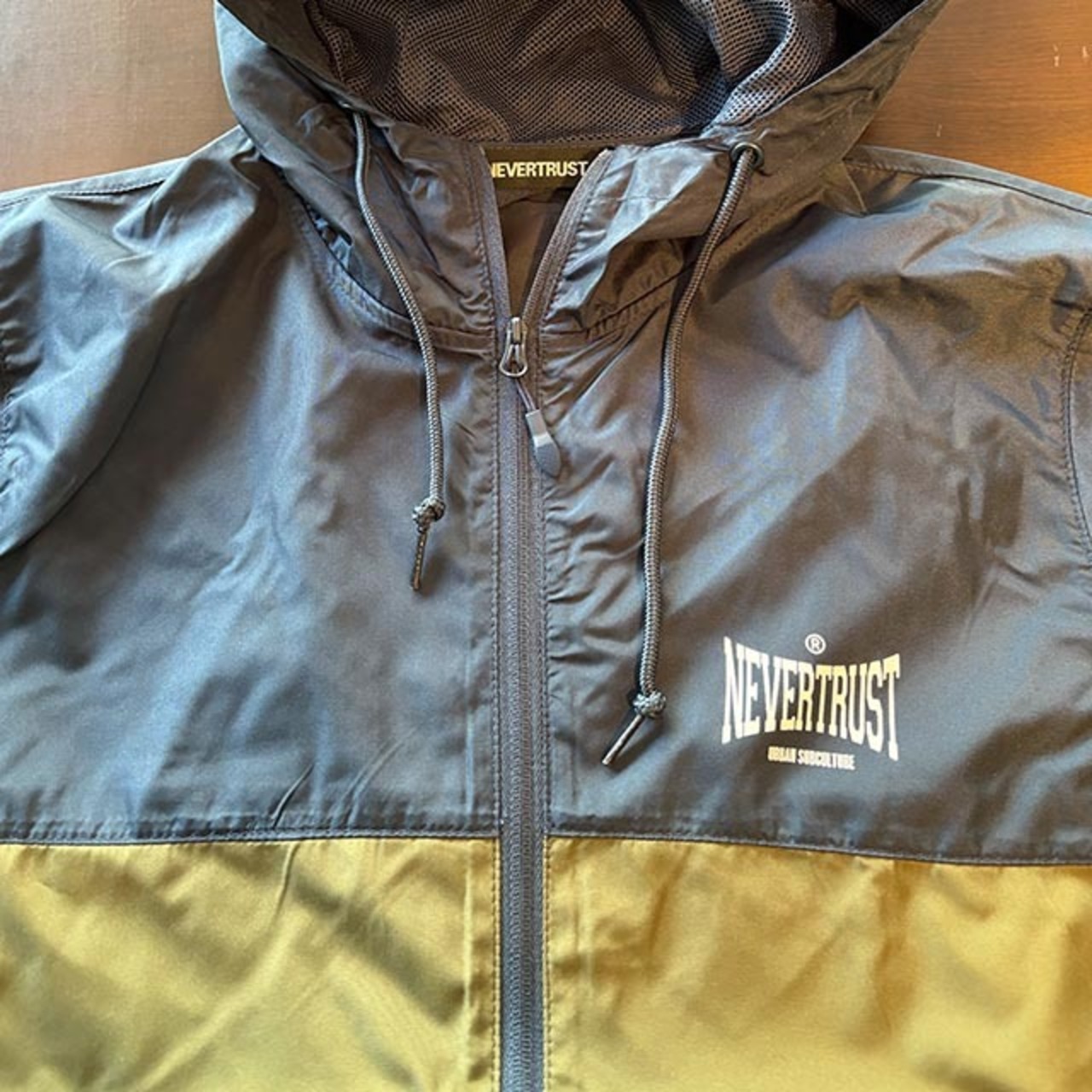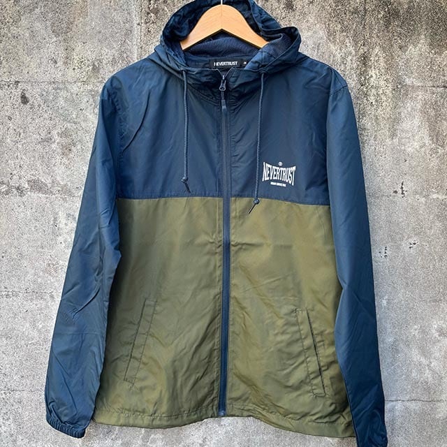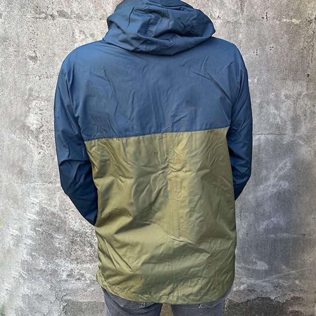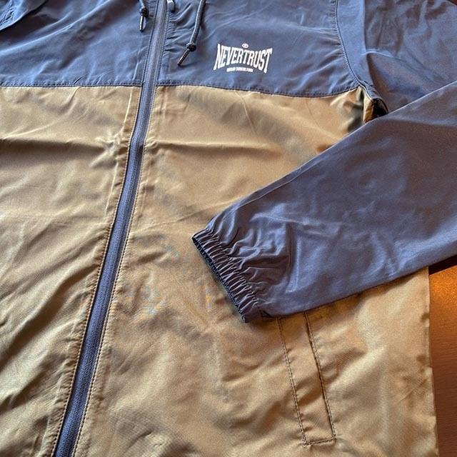 フロントは上下でバイカラーに切り替えたデザイン。雨や風の侵入を防ぐ止水ジッパーを採用しています。
