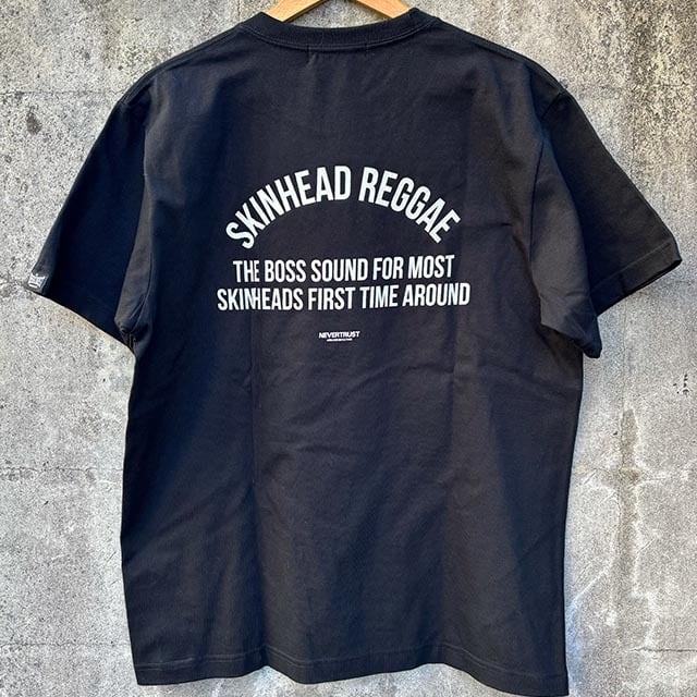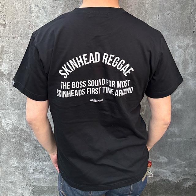 バックには"THE BOSS SOUND FOR MOST. SKINHEAD FIRST TIME AROUND"のフレーズをプリント。これはスキンヘッドカルチャーの歴史の記した名著「Spirit of '69 : A Skinhead Bible」(ジョージ・マーシャル著)の中で、当時のレゲエ / ボスサウンドを象徴する言葉として使われた印象的なフレーズです。袖にピスネーム付き。