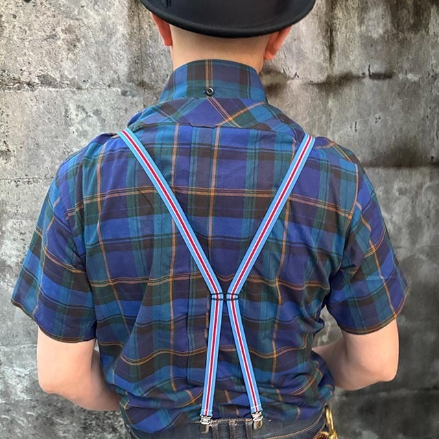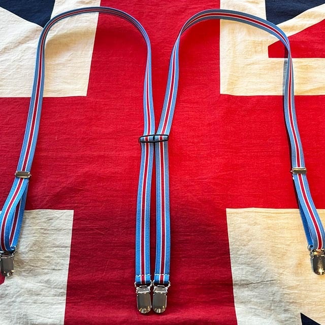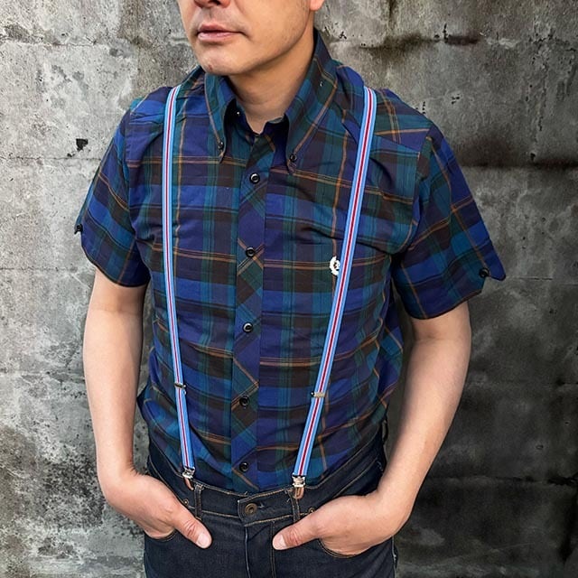トラディショナルなストライプ×H型バックルのナロー(細幅)のサスペンダーです。