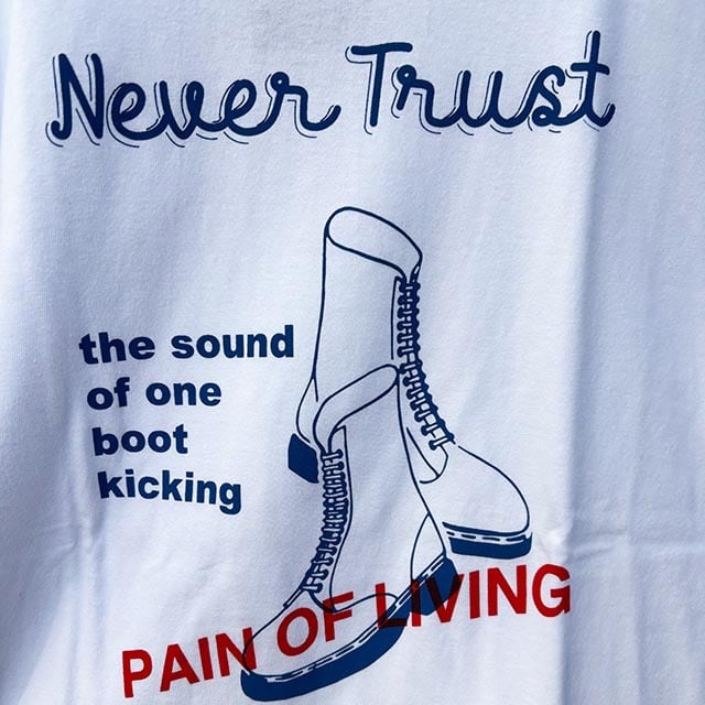 PAIN OF LIVINGは「生きる痛み」。生きることに伴う苦悩や葛藤を孕んだ、スキンヘッドらしいメッセージ、印象的なフレーズです。袖にピスネーム付き。
