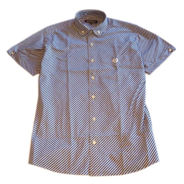 バイヤスストライプ・半袖ショートラウンドカラーBDシャツ Navy/White