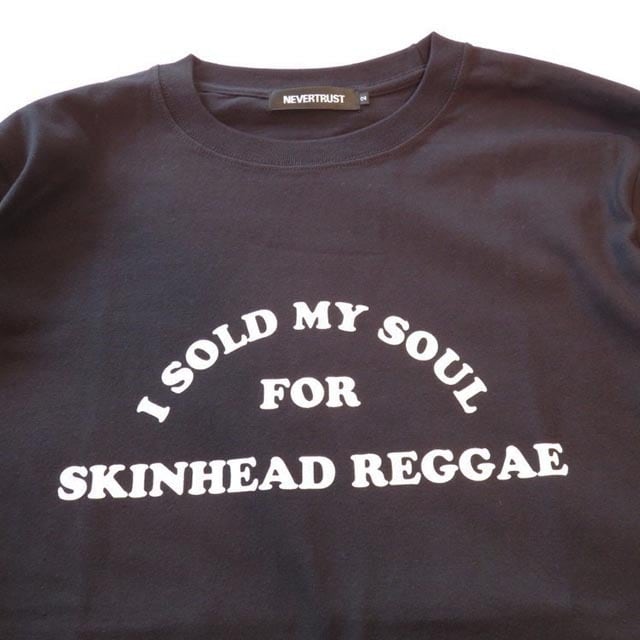 直訳すると私はスキンヘッドレゲエに魂を売った...スキンヘッドレゲエが大好きというメッセージのシンプルなロゴプリントの長袖Tシャツ。