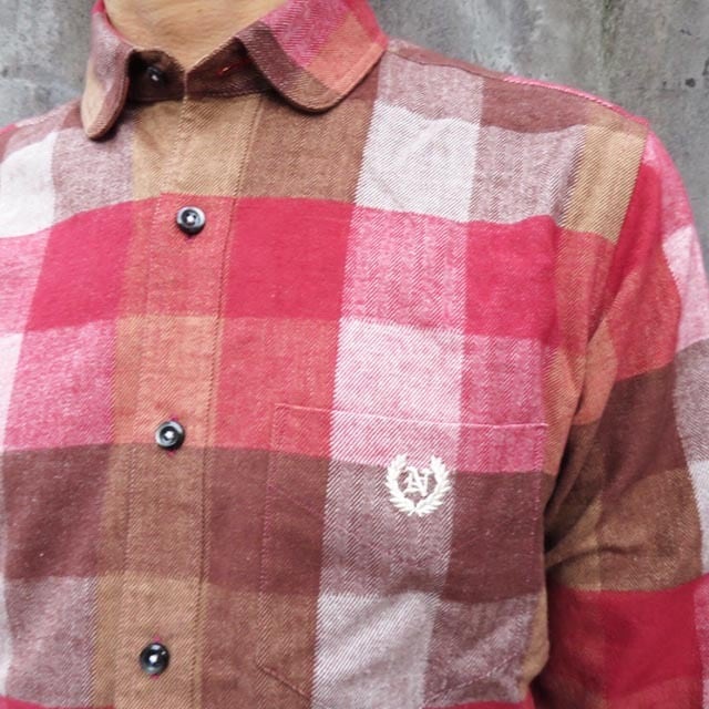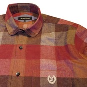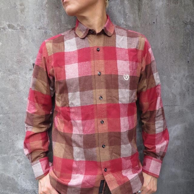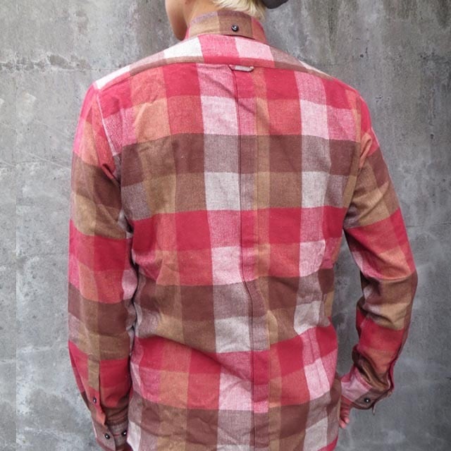 ヘリンボーンブロックチェック・ショートラウンドBDシャツ RED