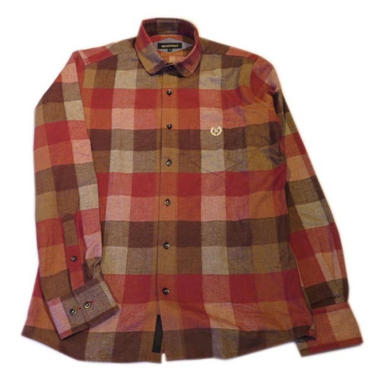 上質な冬素材の気品あるレトロなヘリンボーン織のブロックチェックシャツです。