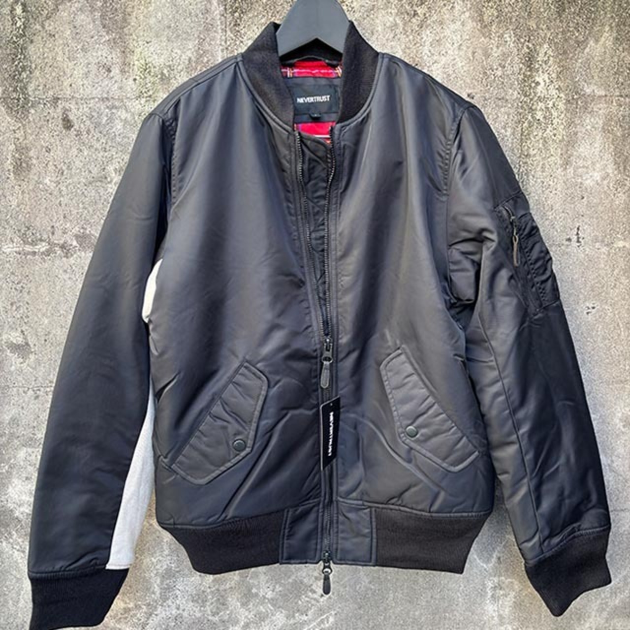 NEVERTRUSTの冬の人気定番アイテムのMA-1(袖裏セントジョージ・タイプ)。