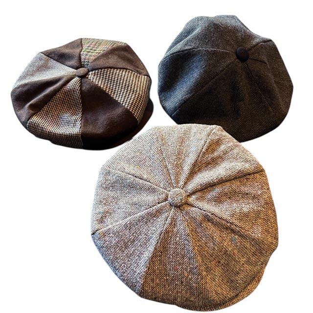 レトロで愛嬌のある大判フォルムと季節感あるウール素材のクラシックな8枚剥ぎキャスケット。