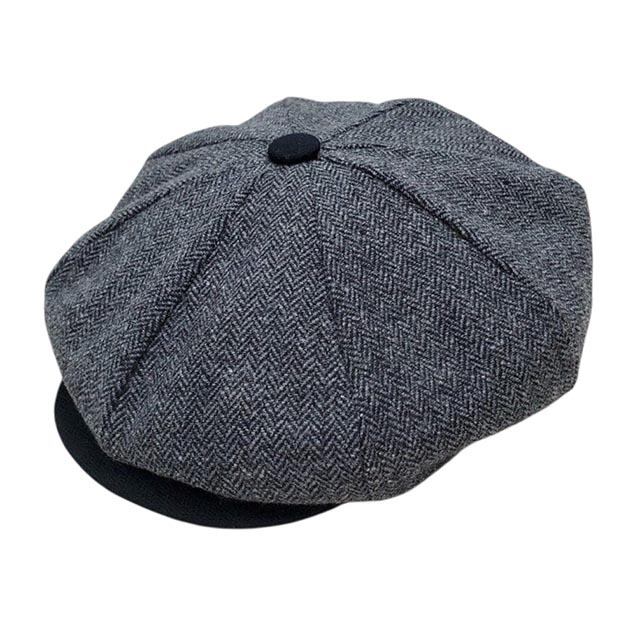 Charcoal Grey Herringbone Wool Apple Newsboy Cap