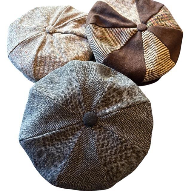 レトロで愛嬌のある大判フォルムと季節感あるウール素材のクラシックな8枚剥ぎキャスケット。