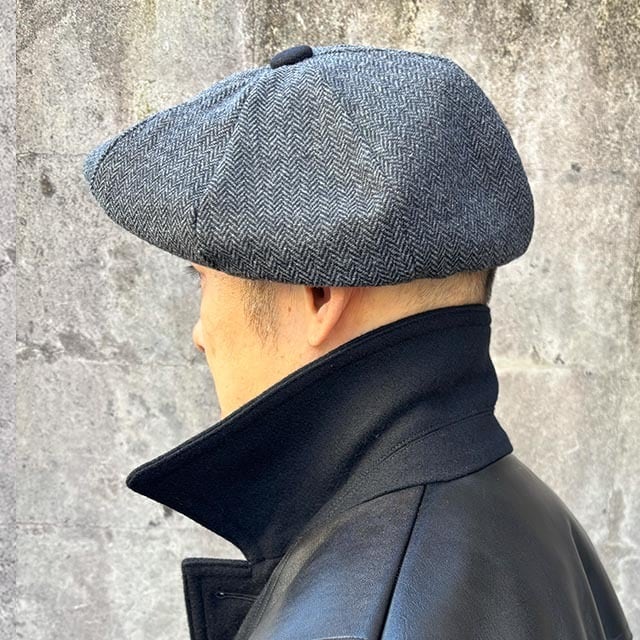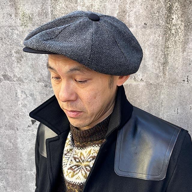 ウール8枚剥ぎキャスケット/ Charcoal Grey Herringbone