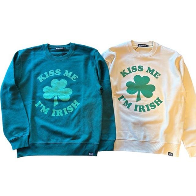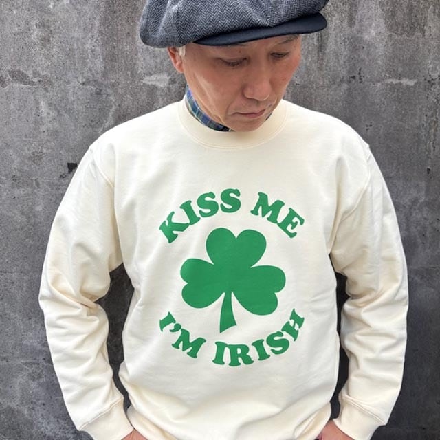 アイルランドではセントパトリックス・デー(アイルランドの祝日)にキスをしたり、されたりすると幸運が訪れるという風習があり、西欧では『Kiss Me, I'm Irish』というのがひとつのジョークとして一般化しています。アイルランドのモチーフのシャムロックを使ったシンプルで一着でサマになる年間通して活躍できるスウェットです。